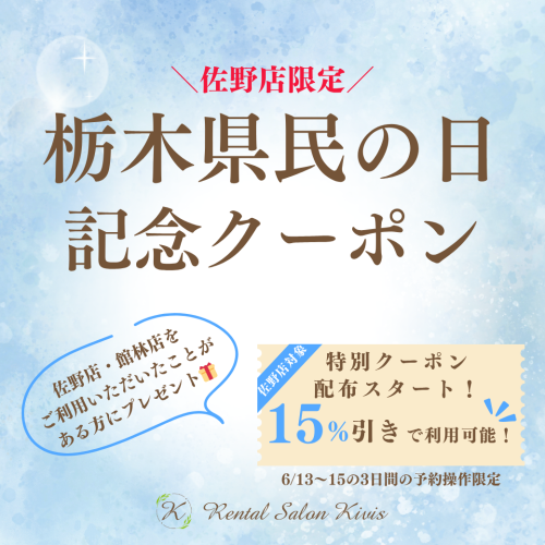 【15%引き!】栃木県民の日クーポン配布スタート!【佐野店限定】