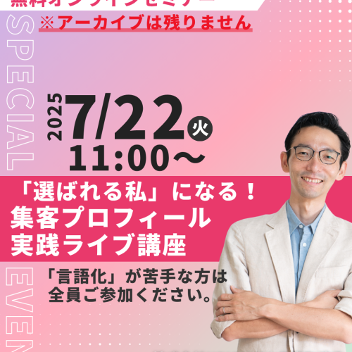 【参加無料】7月8日開催「スキルを価値に変える 集客勉強会」のお知らせ