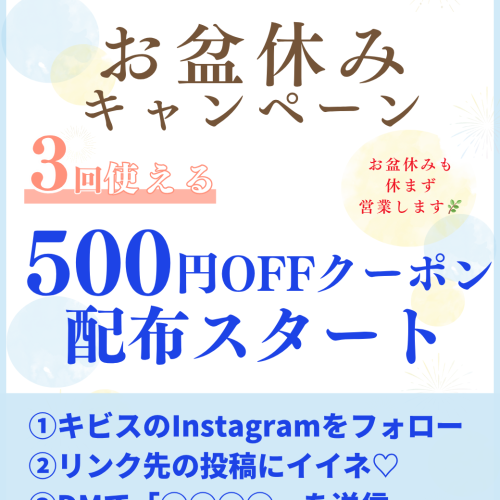 【お知らせ】レンタルサロンキビスはお盆休みも休まず営業いたします🌿