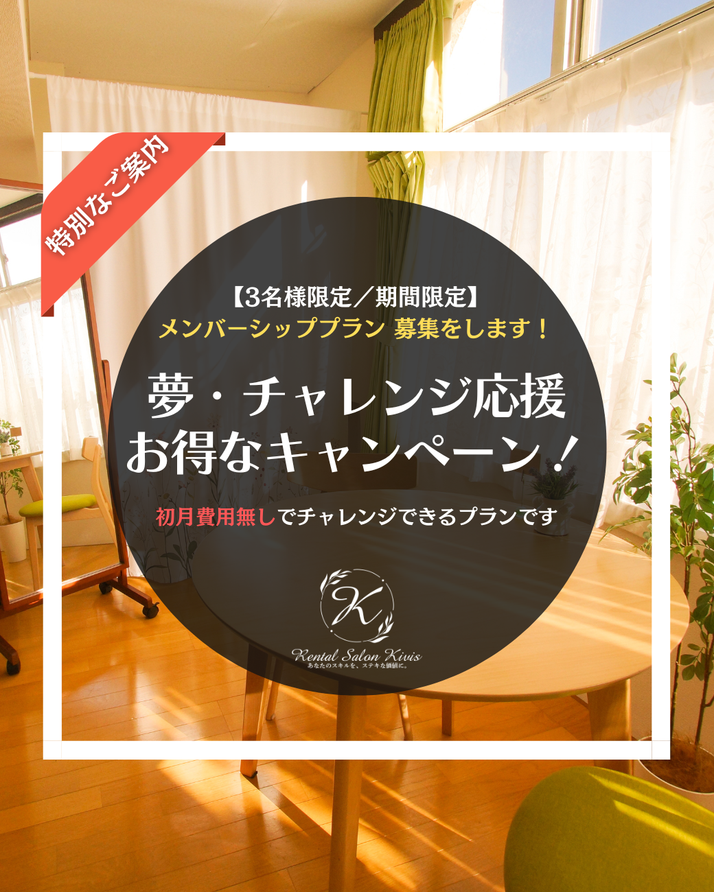 レンタルサロンキビスは、チャレンジする方を応援します✨️