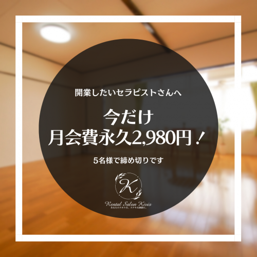 【開業したいセラピストさんへ!】5名様限定でサロンを最安値でご利用いただけるプラ...